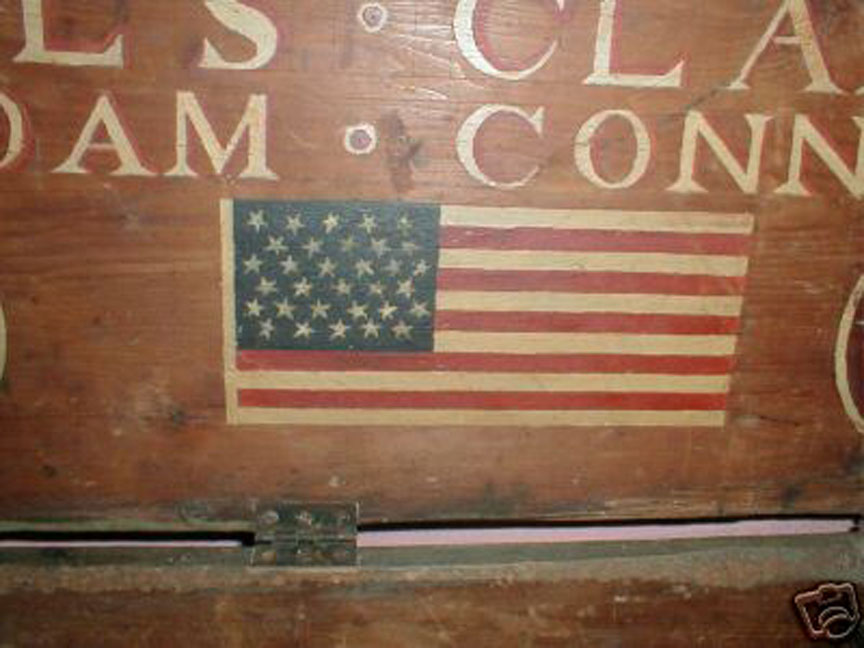 of Haddam, CT. Box appears to be of 1830's-40's construction or perhaps a bit earlier due to the large size of the boards used. The decoration and
