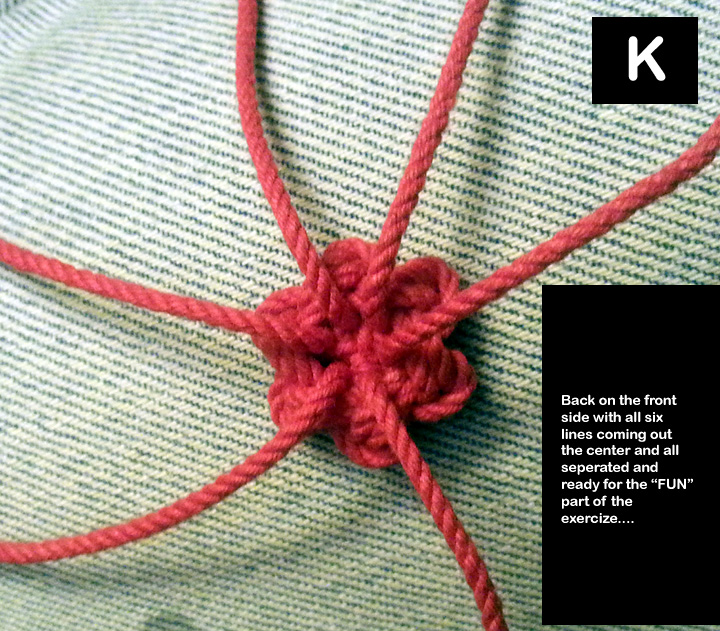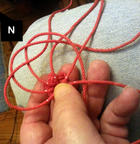 And "K" shows the FACE of the knot and how all six lines should come up and be separated out. Also note that the knot has NOT been tightened up other than from friction as we lead lines through their tucks...
