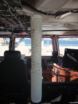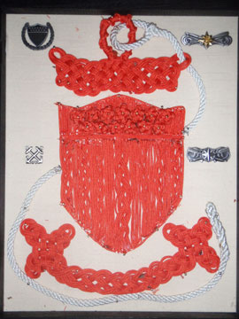 | Proof that the arts of marlinspike seamanship live on in the U. S. Coast Guard! Thanks, Boats! Incidentally, you may notice the "Pell" or "Jamestown" bridge in the background of the ship's crest... when I was in Newport that was still being built and it was a thirty-minute ferry ride to get across that nasty little bit of water! |