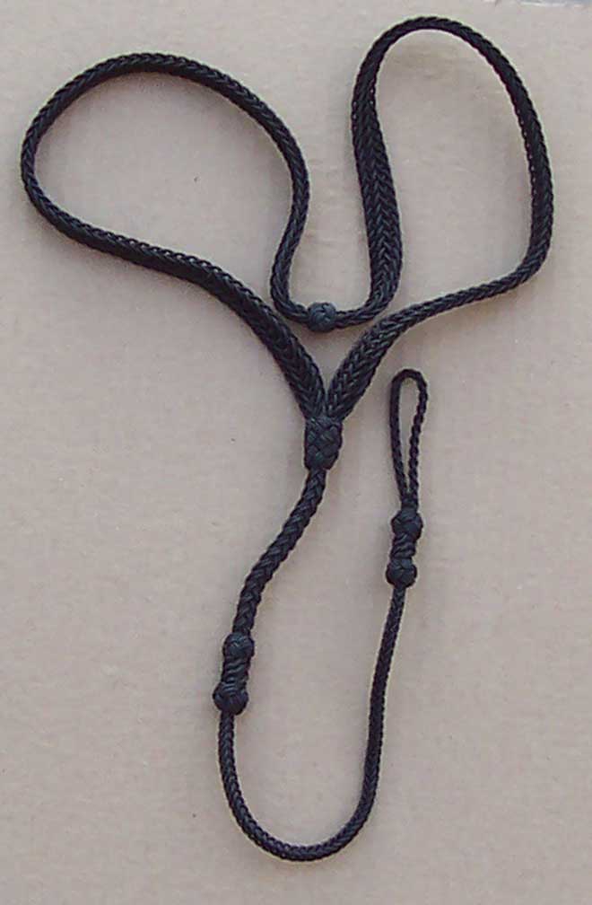 to a footrope knot transitioning to a 4-strand call loop. Neckstrap is appx 1/2" wide x 3/16" thick.