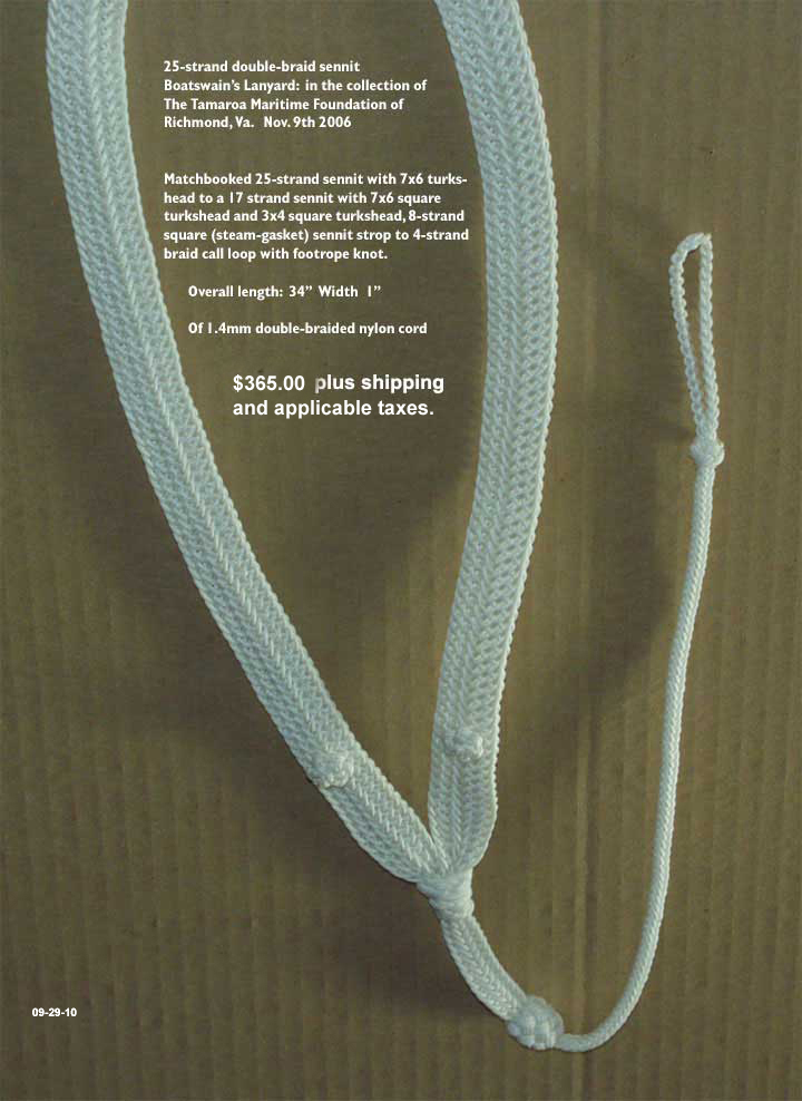 A seventeen-strand double-braided sennit lanyard made on commission: the neckpiece is 17" from the center to the join and the