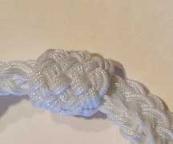 to a 16-strand square braid to another 5x4 turkshead transitioning to the main strop, an 8-strand square braid (steam-gasket braid)