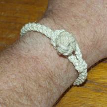 when handling sails and is different than the standard "Nantucket Bracelet" in that it is removable from the wrist without taking