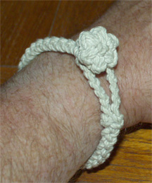 The wristlets are made of a six-strand half-round braided cotton codline (easier on the wrist due to one fairly flat side) and have