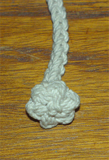 either the "Manrope" or "Star-knot" finials. The cotton line is washable and will "shrink to fit" your wrist. I find that ladies