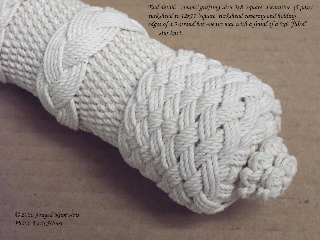 10 hours to do. Third size transition is covered by an 11x10 square TKH and the end is done in a 13 X 11 turkshead which also "laps"