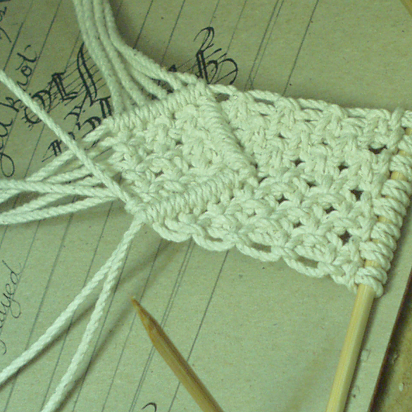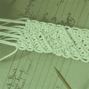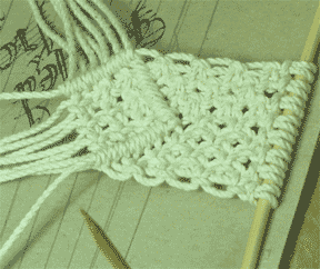 you to carry on as though there was no break at all... After a few rows, turn the work over and trim