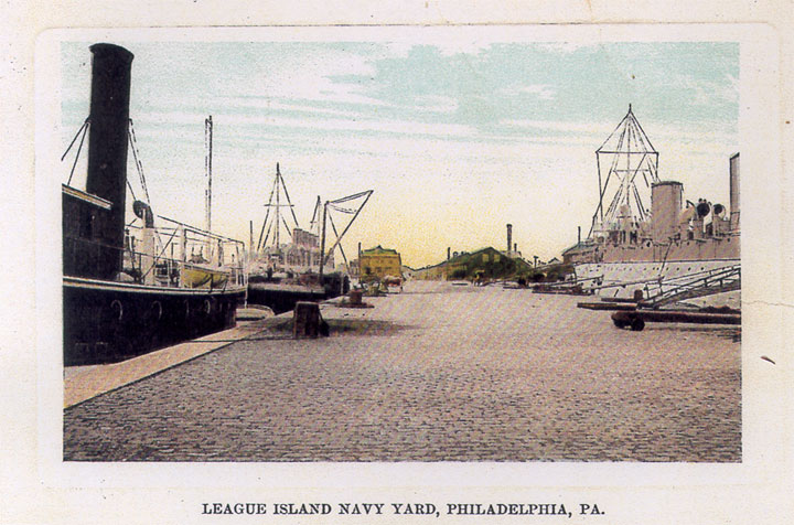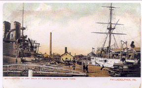 | Two postcard views of the League Island Navy Yard, which became the US Naval Shipyard in Philadelphia. At a guess, I'd date the views to about 1905 or so. League Island was where the shipyard was built when it moved from the old Front Street location about 1870 or so. |