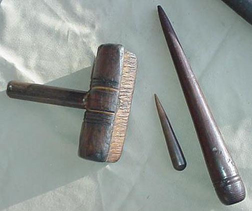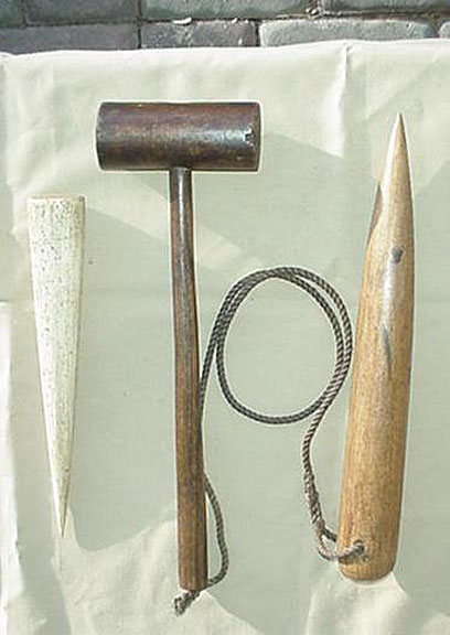 tarred line (marline) was wrapped around the rope to be served, then the mallet was placed on the rope and a few turns taken