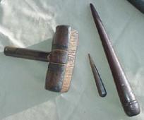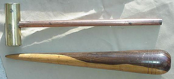 Top: a brass mallet, used for any