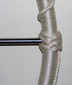 (4) Turks Head covering the connections. I wouldn't want to take the time to weave and tighten up a Turks Head like this today.