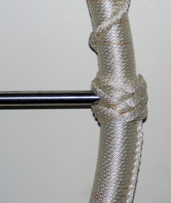 and coming out as a Spanish coxcomb (or ringbolt hitch) and finally a side view of the split turkshead.... Good On Yer, Mate!