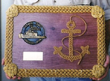 and a detail of the seventeen-braid sennit he used to make 'em, a knotboard he made for a reunion of the USS Manuel and a larger