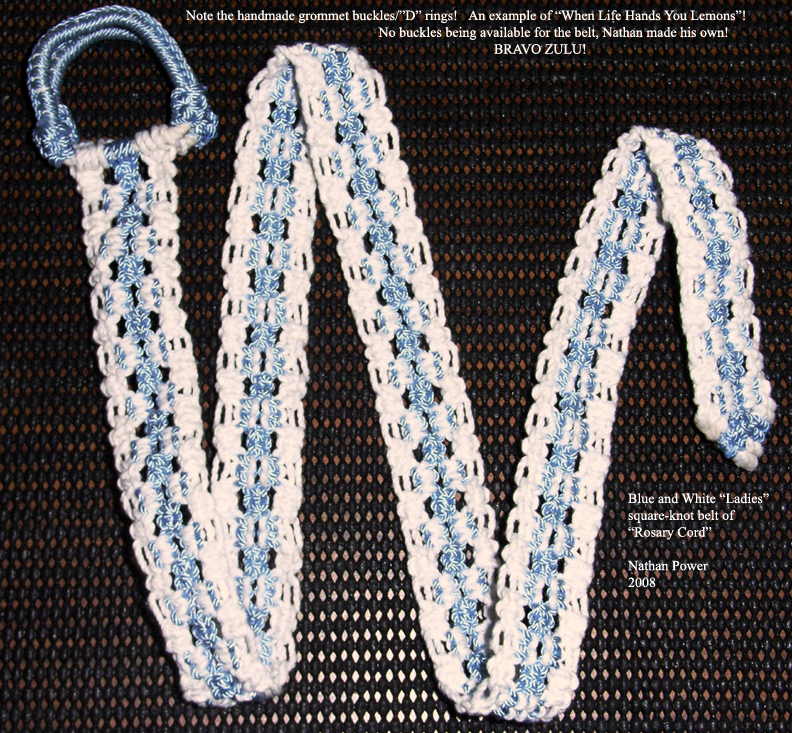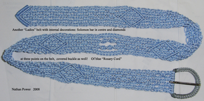 Next, a blue belt made for a friend's lady, of blue "rosary cord" with diamonds and a