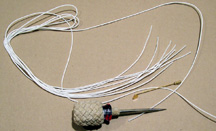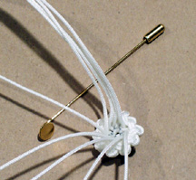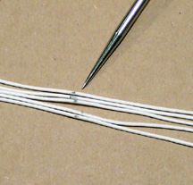 Take 5 pieces 18" of 1.2 or 1.4 mm braided blind cord and 'dope' the ends (about 1 - 1