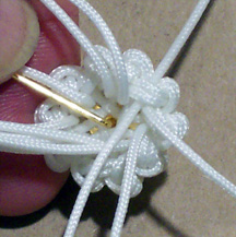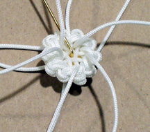 When done this, you should have all ten legs coming up thru the center of the star, each