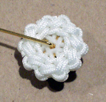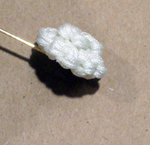 Now you want to introduce the lapel pin's shaft DOWN through the center hole of the