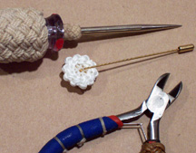 Wriggle the pin into position with all ten legs spaced around the flat plate.