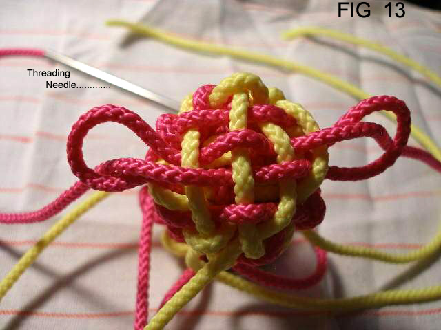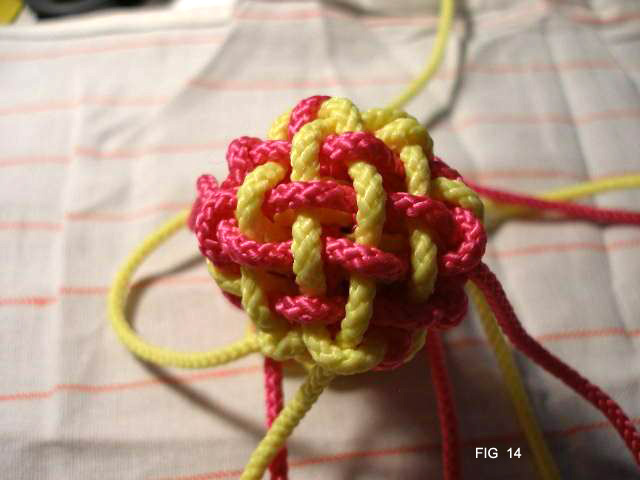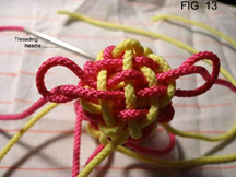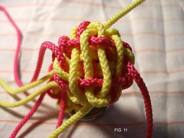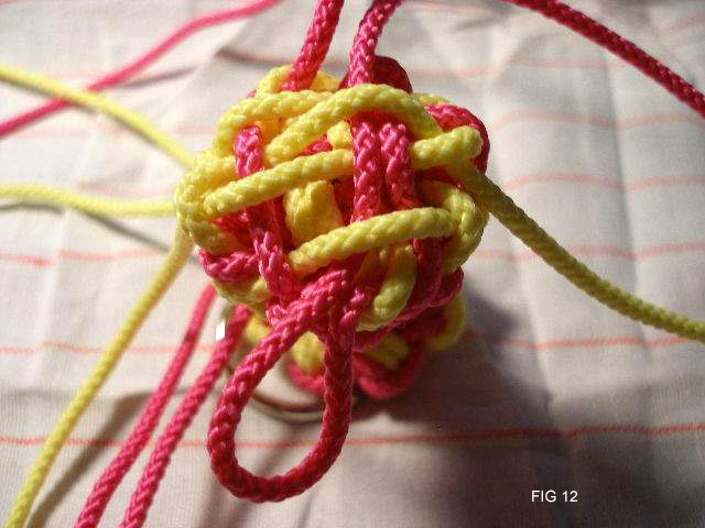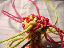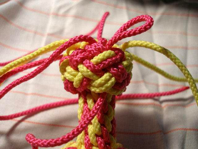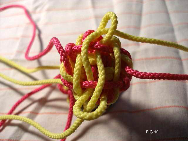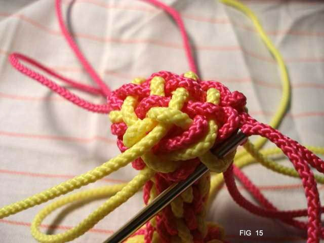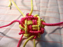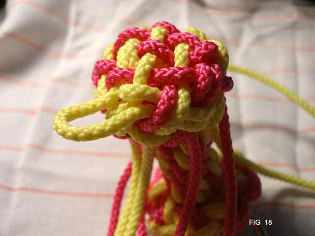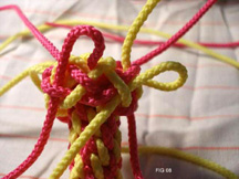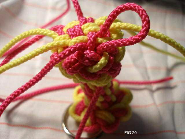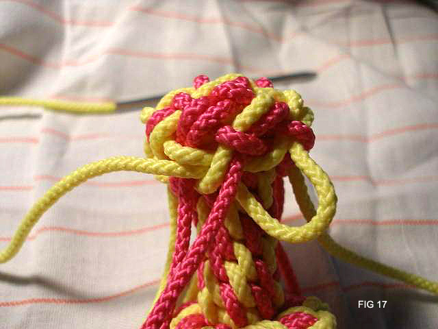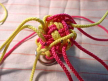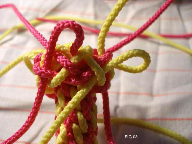 21: Continue now taking all 8 cords through the edge of the knot