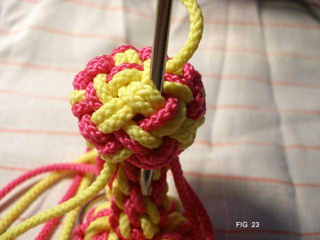 23: Last cord going through edge of the knot.