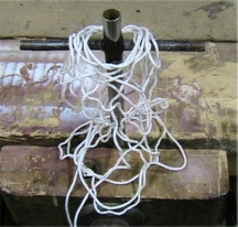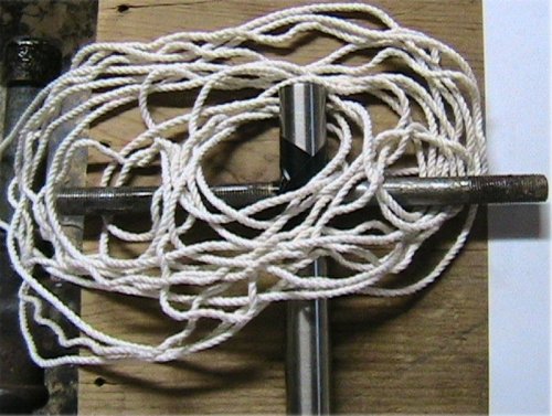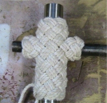 The long and the short of it. The larger cross used 150' of 1/4" tarred line and took about 60 hours to make and fair up. At six passes,