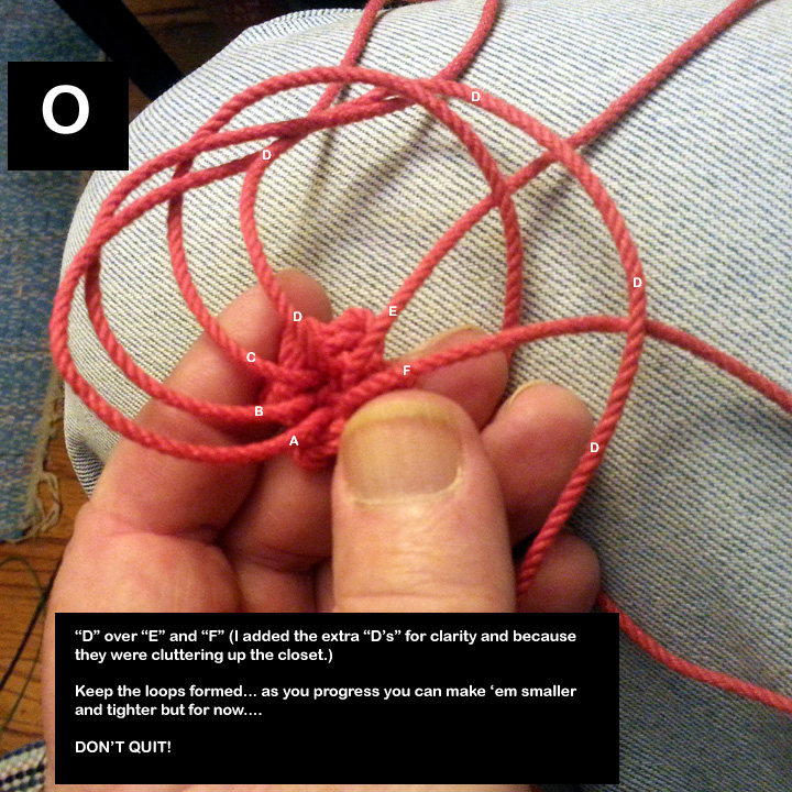 "O"... Take line "D" over "E" and "F" and down between "F" and... "A"