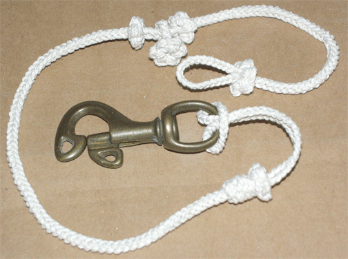 Lanyards as shown above can be made of any length and are now made with the thimble eye and a brass shackle for attachment